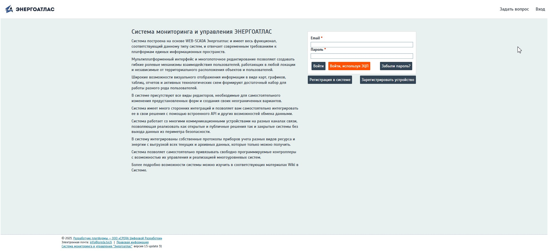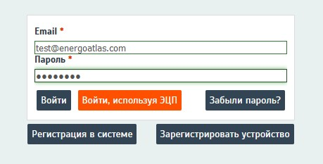 Стартовый экран входа в Систему Энергоатлас