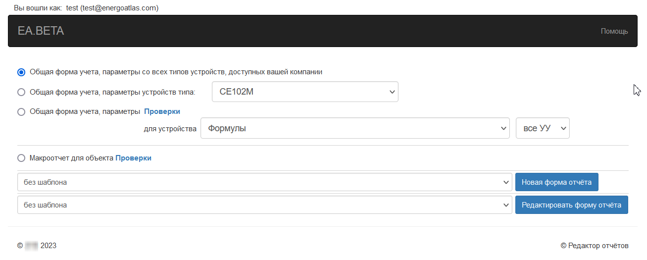 _**Внимание!** Закладка «**Редактор форм отчетов**» доступна только сотрудникам предприятия, кому даны права администратора (полное управление объектом)._