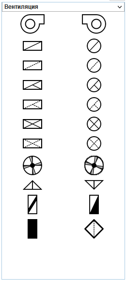 Вентиляция - Содержит различные элементы для отображения схем вентиляции.