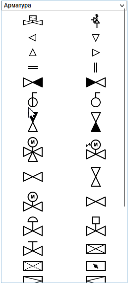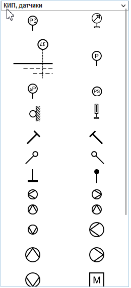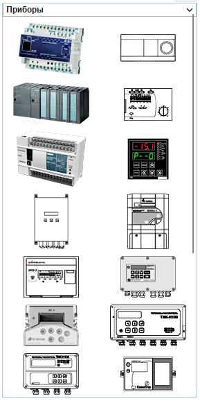 Библиотеки элементов и фигур для рисования мнемосхемы содержат схематические изображения основного технологического оборудования, приборов и материалов.