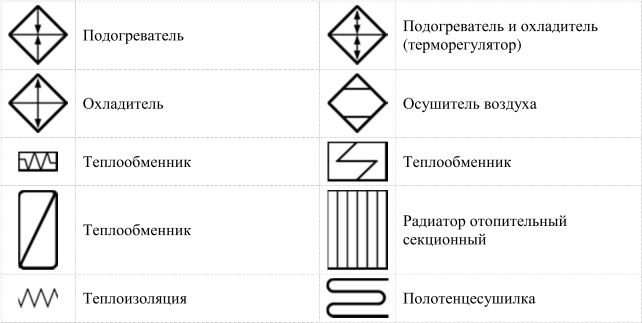 | Теплообменное оборудование | Краткий перечень обозначений |