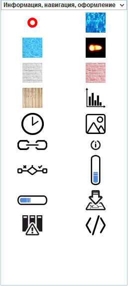 Для построения мнемосхемы Вы можете использовать элементы из следующих библиотек функциональных основных элементов: