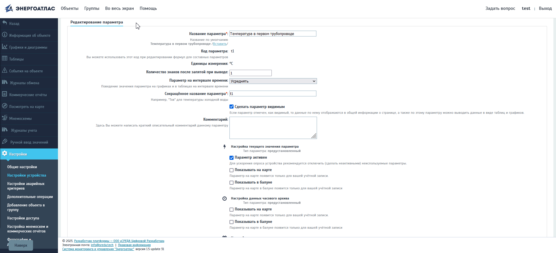 Порядок редактирования настраиваемых параметров в системе Энергоатлас имеет некоторые особенности. Кликом по иконке