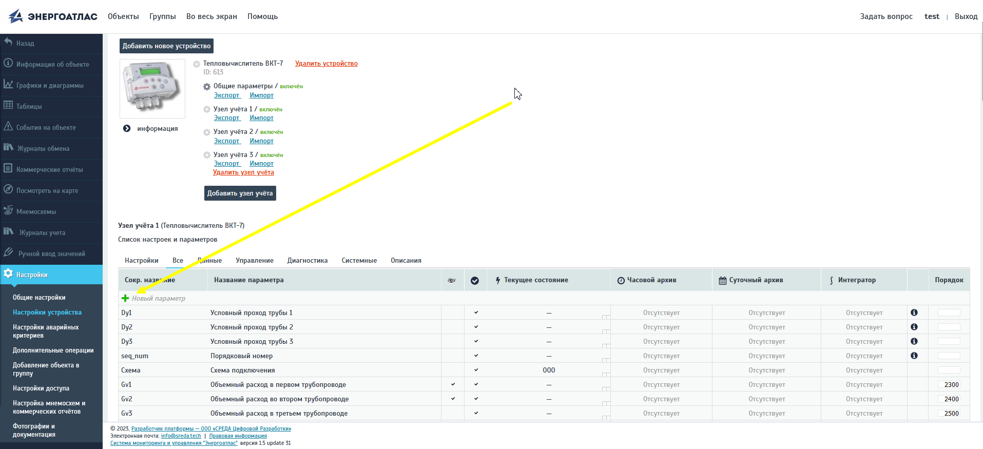 Рассмотрим процесс создания нового параметра на приведенном ниже примере.