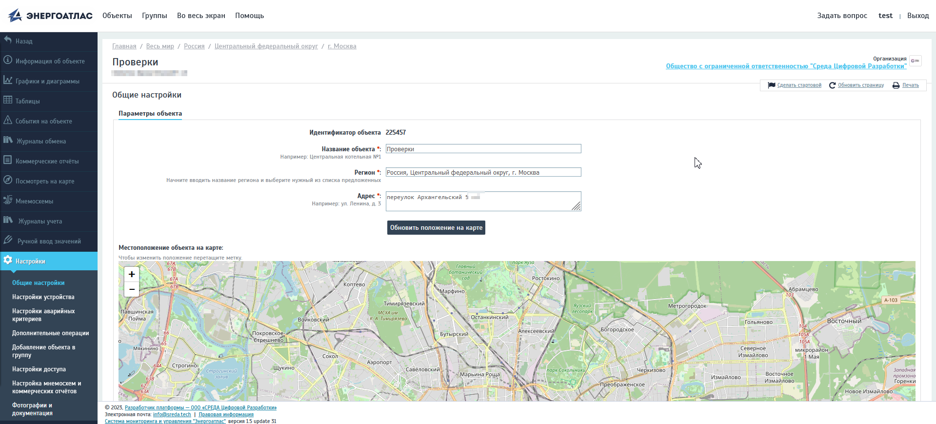 В разделе «Параметры объекты» Вы имеете возможность изменить название объекта, его адрес и местоположение на карте.
